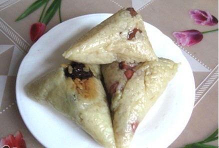 做法:將糯米泡一夜,然后把花生米、豇豆泡6小時(shí)以上,五花肉切塊加醬油、姜、料酒、糖和鹽漿一夜。把粽葉泡軟,取一片粽 葉折出一個(gè)三角,放一勺米,再放豆、花生米、肉和棗,最后再放一勺米。用手壓實(shí)米,把粽葉從上往下折疊,疊成三角形,用 棉線綁結(jié)實(shí)。在高壓鍋放進(jìn)沒(méi)過(guò)粽子的水,上面壓一個(gè)盛水的盆,蓋好鍋蓋,扣限壓閥燒開(kāi)一個(gè)半小時(shí)即可。