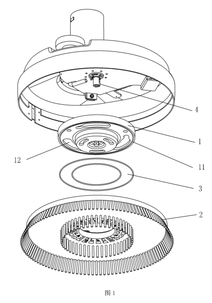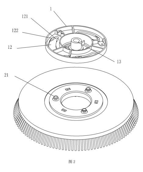旭潔洗地機刷盤的安裝方法是:使用刷盤升降踏板升起刷盤座,將刷盤放到刷盤座中央,向上貼合刷盤座,向左旋轉(zhuǎn),待刷盤裝好,啟動刷盤開關(guān),刷盤轉(zhuǎn)動,完成裝刷操作。目前市場上所有洗地機品牌基本都是通過類似的電機導(dǎo)向?qū)崿F(xiàn)刷盤固定座與刷盤的自動對位,在對位的過程中,刷盤固定座與刷盤的安裝端面剛性碰撞,會產(chǎn)生強烈的碰撞對位噪音,影響操作者使用舒適性。為了提高用戶體驗,旭潔新型洗地機進(jìn)行了研發(fā)和改善。